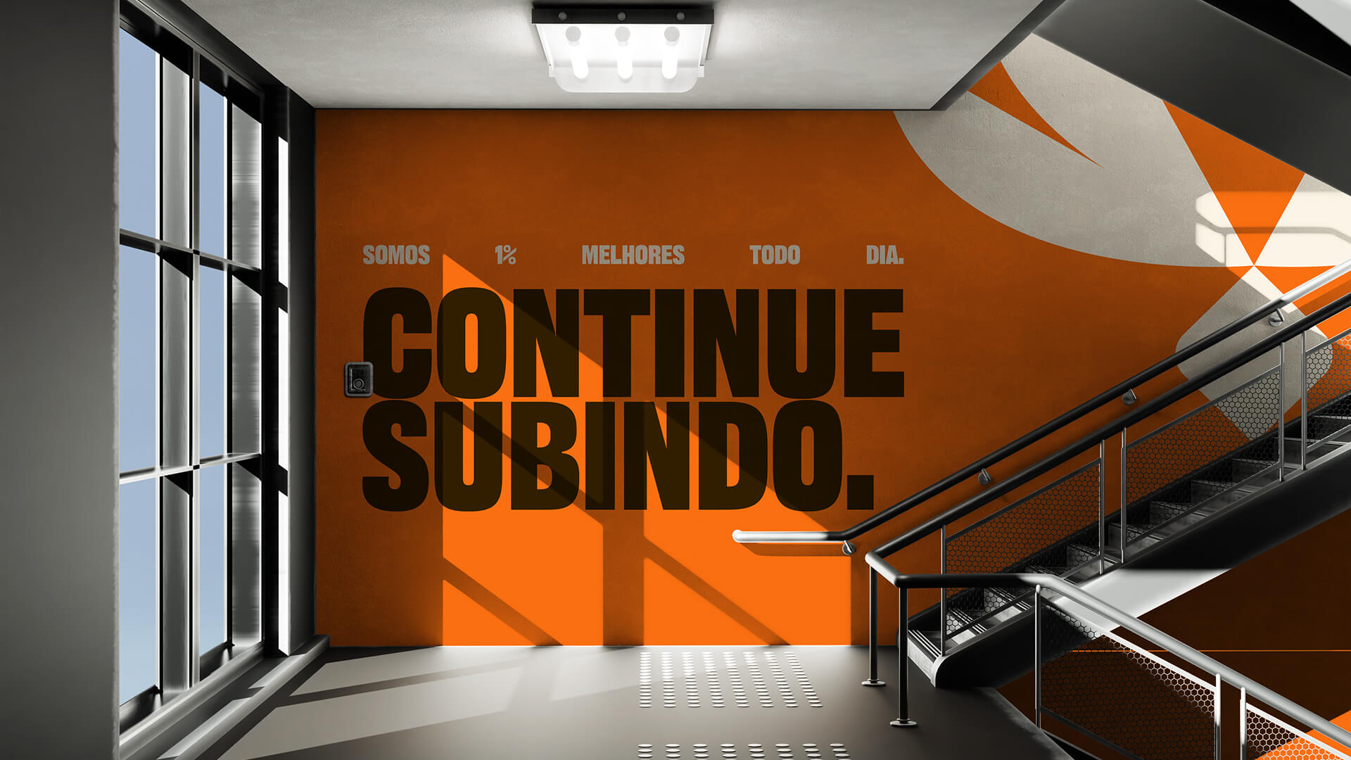 Na tipografia, a fonte em suas formas condensadas e atléticas, quebra o padrão das fontes sem serifa comuns no setor. Aplicada em peso bold e caixa alta, ela carrega em cada letra a força e liderança que a marca representa, recebendo ajustes personalizados que a tornam ainda mais única e fluida.