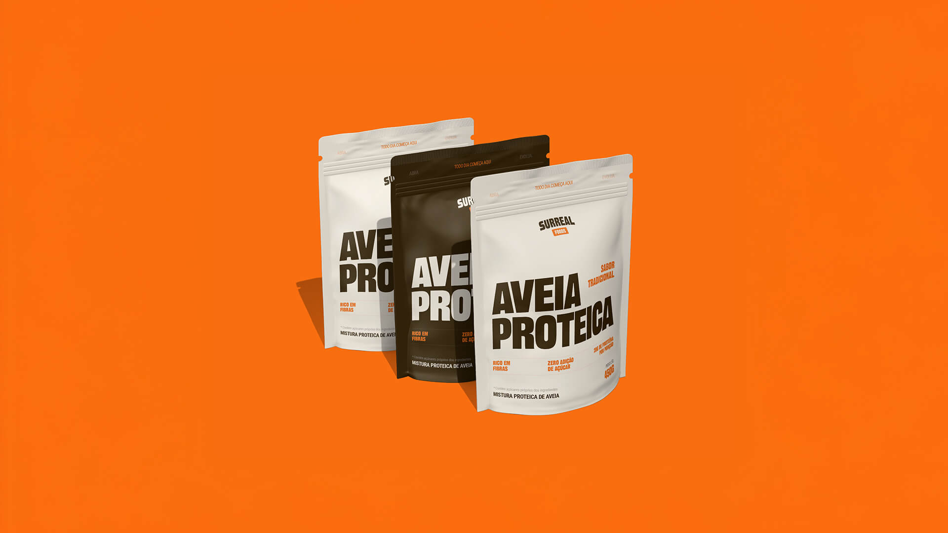 A Surreal Foods, uma marca nascida da paixão por esportes e bem-estar, precisava de uma identidade visual que rompesse com os padrões estabelecidos no mercado de alimentação saudável. Era necessário criar uma marca que não apenas se destacasse visualmente dos concorrentes, mas que também traduzisse visualmente sua filosofia de transformação constante e superação diária.
